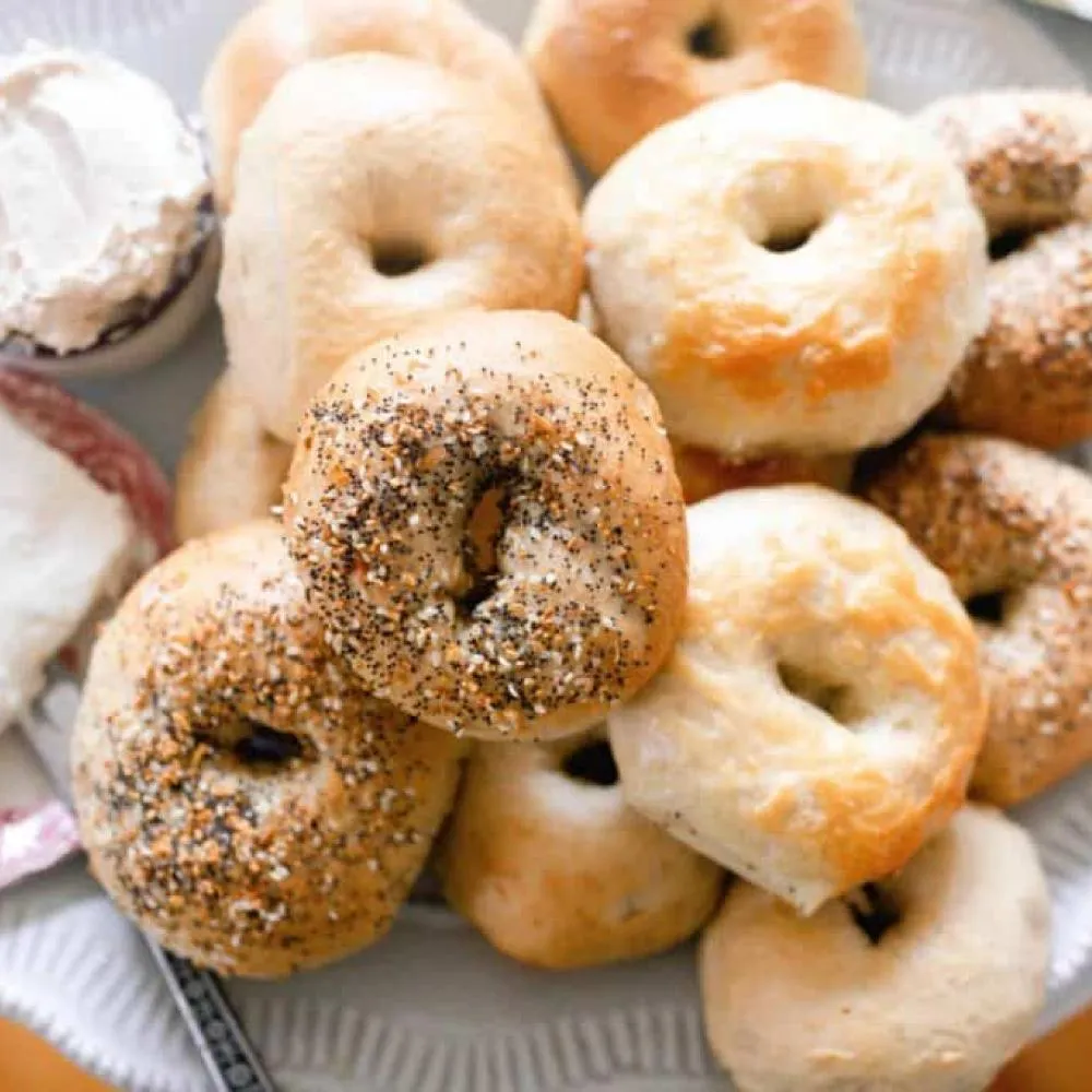 Chewy sourdough bagels with a golden crust and tangy flavor—naturally leavened and boiled for authentic texture.